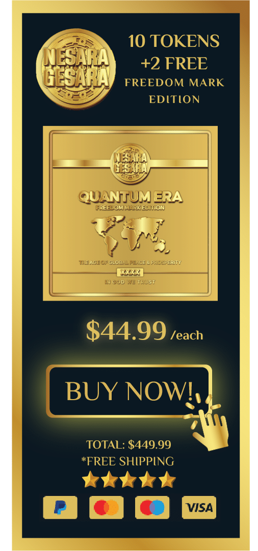 The Nesara Gesara Token is a high-quality, limited-edition keepsake designed to commemorate the legacy of Donald Trump’s presidency. It also serves as a symbol of support for his glorious return to leadership